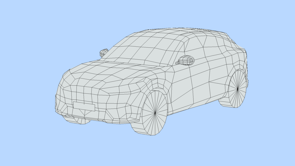 Low poly car with nice geometry and surface flow, realistic looking with high-quality textures.