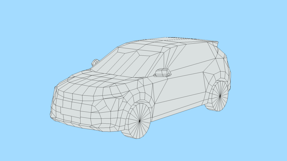 Low poly car with nice geometry and surface flow, realistic looking with high-quality textures.
